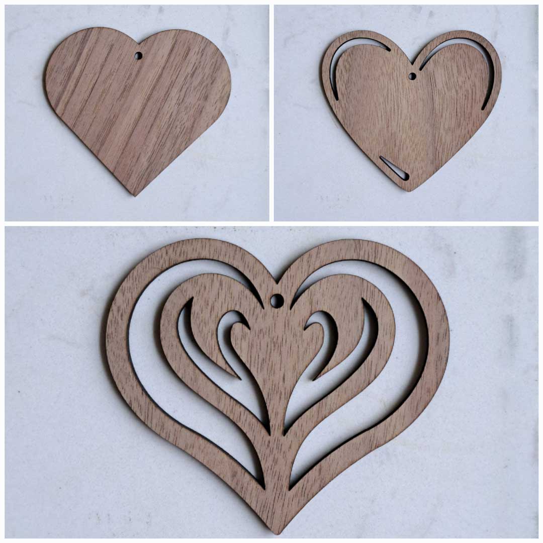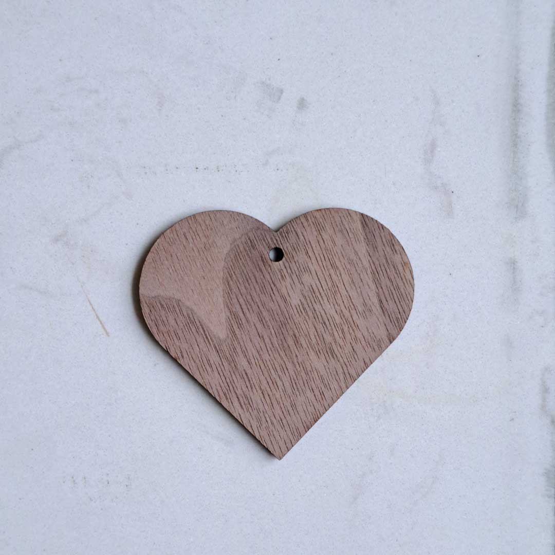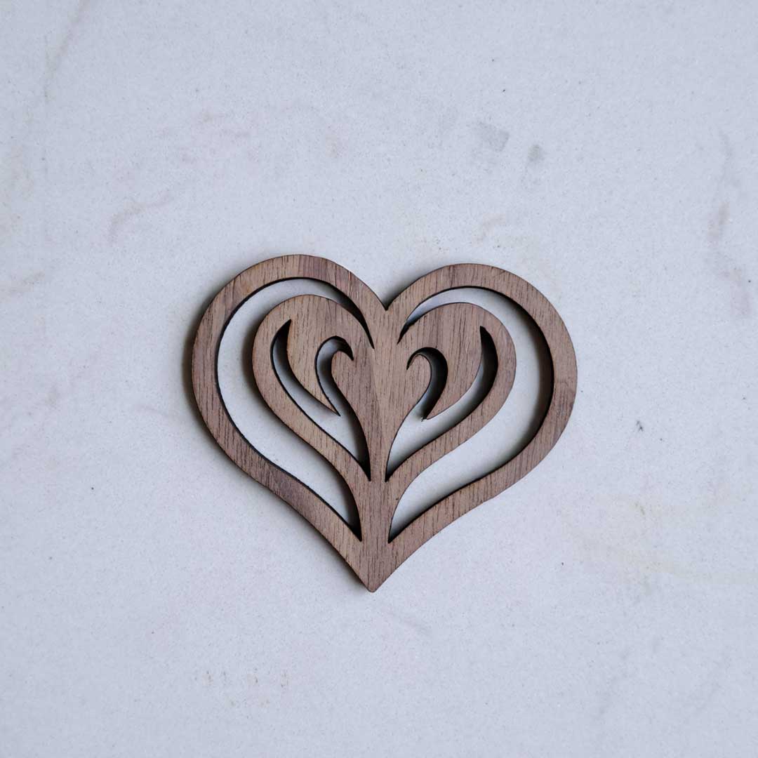 Lasergeschnittener Dekoartikel aus Walnuss-Mehrschichtholz, mehrfach verleimt.