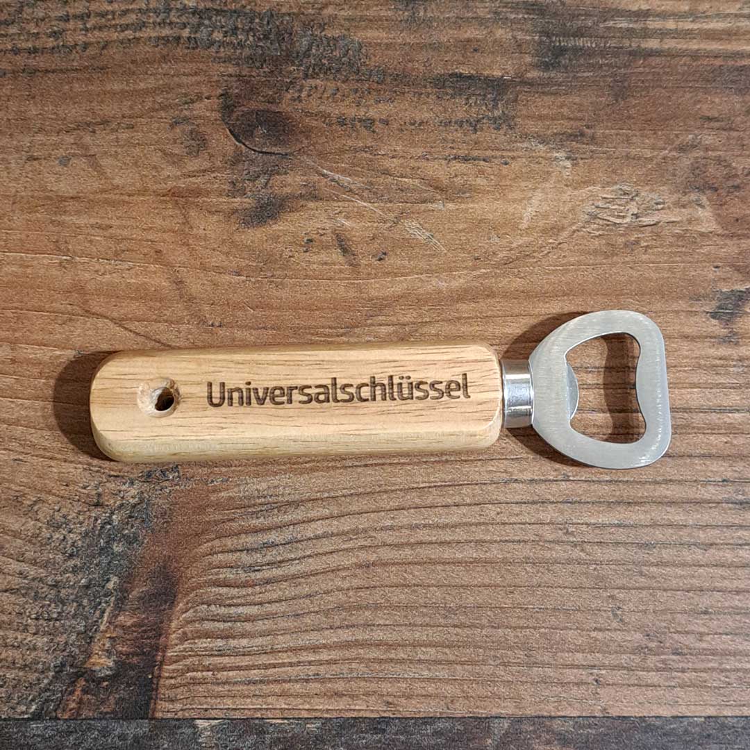 Flaschenöffner mit verschiedenen lasergravierten Motiven.