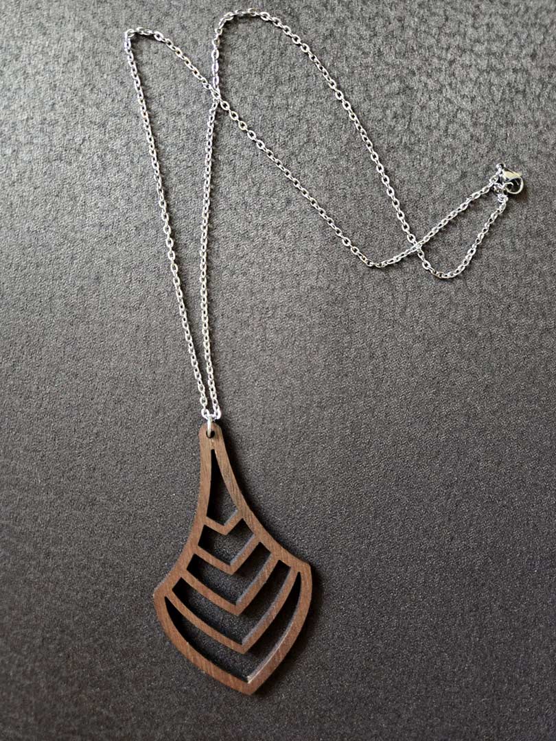 Der Kettenanhänger ist leicht und angenehm zu tragen; dank der stabilen Holzstärke behält er seine Form. Ideal für Alltag, Büro oder besondere Anlässe.