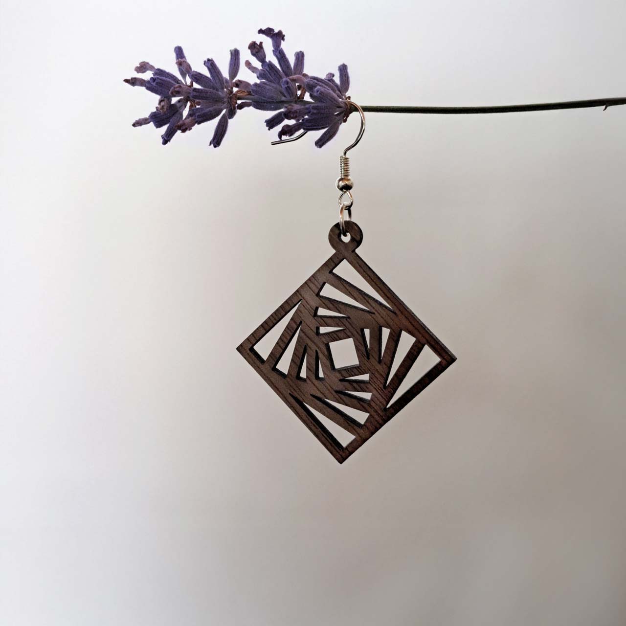 Diese Ohrringe kombinieren natürliches Material mit präziser Lasertechnik: das 3 mm mehrschichtige Walnussholz wurde fein gelasert und mit hautfreundlichem Jojobaöl eingelassen, sodass Maserung und dunkle, warme Töne besonders schön zur Geltung kommen. Die Aufhängung besteht aus versilbertem Edelstahl.