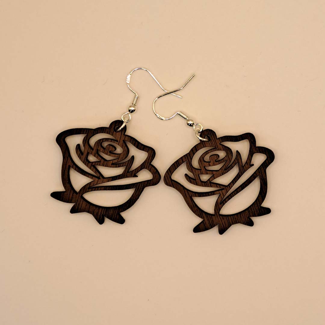 Diese Ohrringe kombinieren natürliches Material mit präziser Lasertechnik: das 3 mm mehrschichtige Walnussholz wurde fein gelasert und mit hautfreundlichem Jojobaöl eingelassen, sodass Maserung und dunkle, warme Töne besonders schön zur Geltung kommen. Die Aufhängung besteht aus versilbertem Edelstahl.