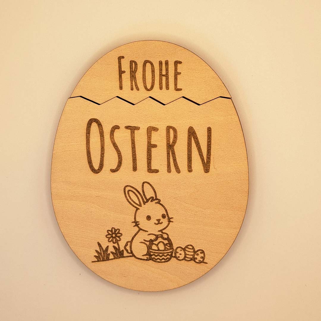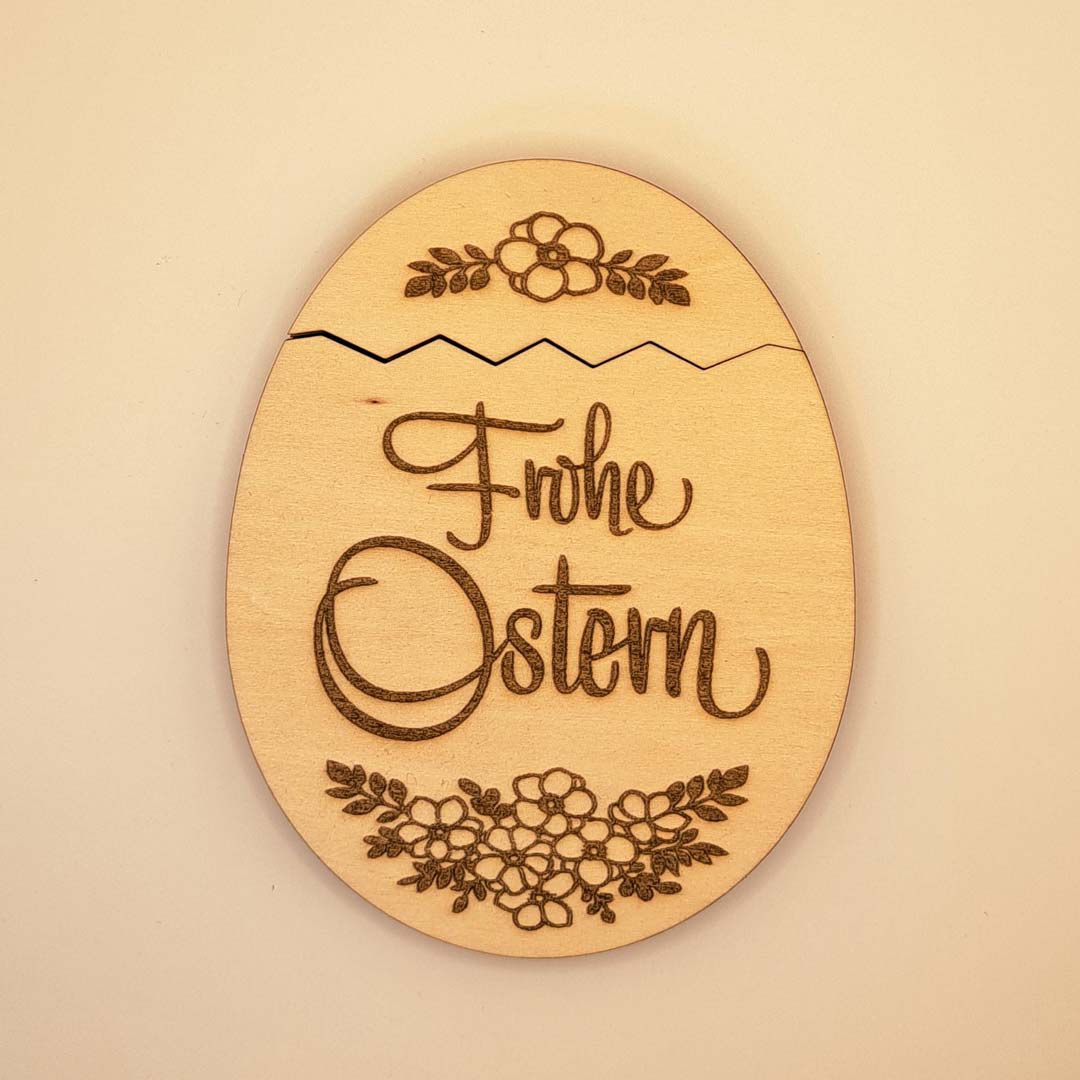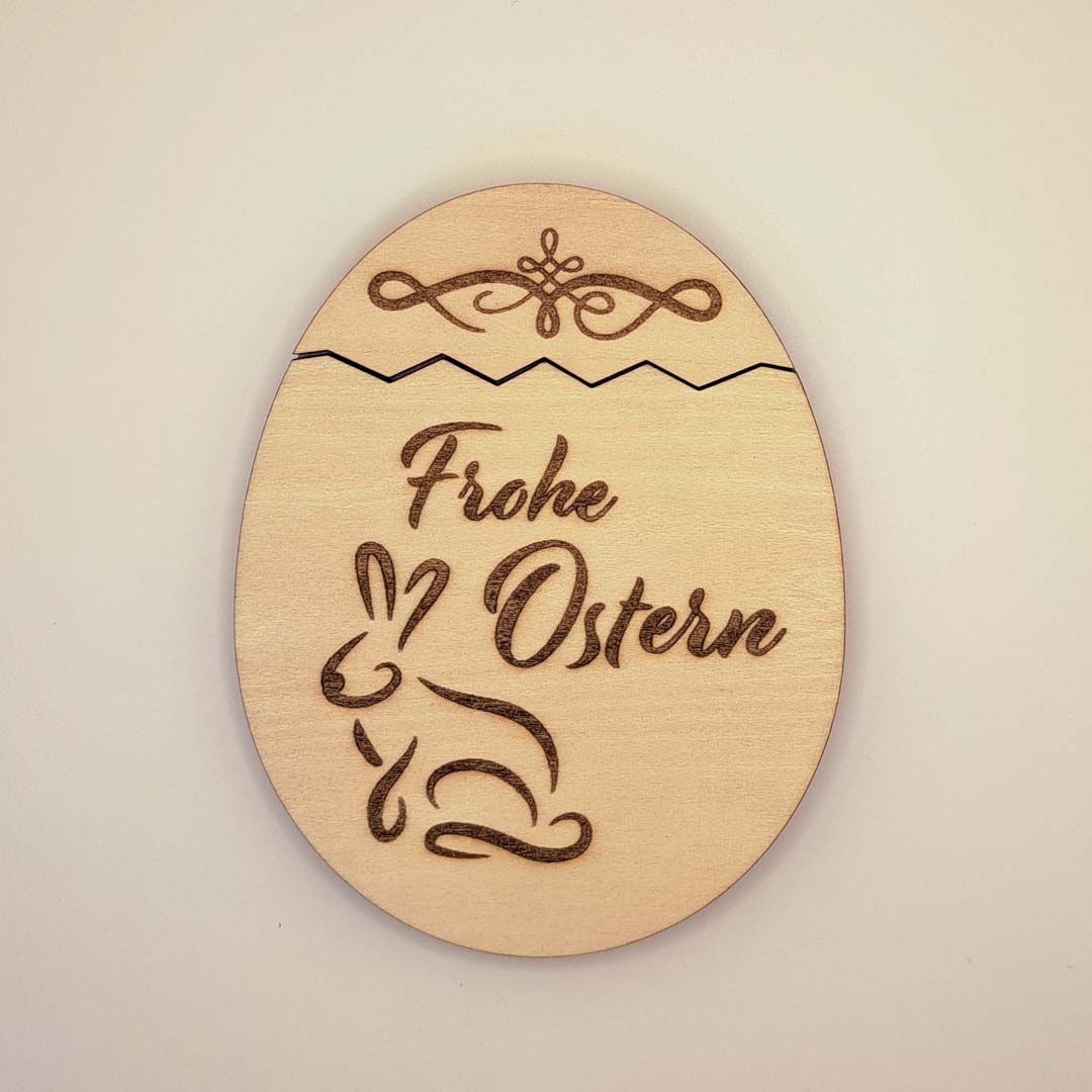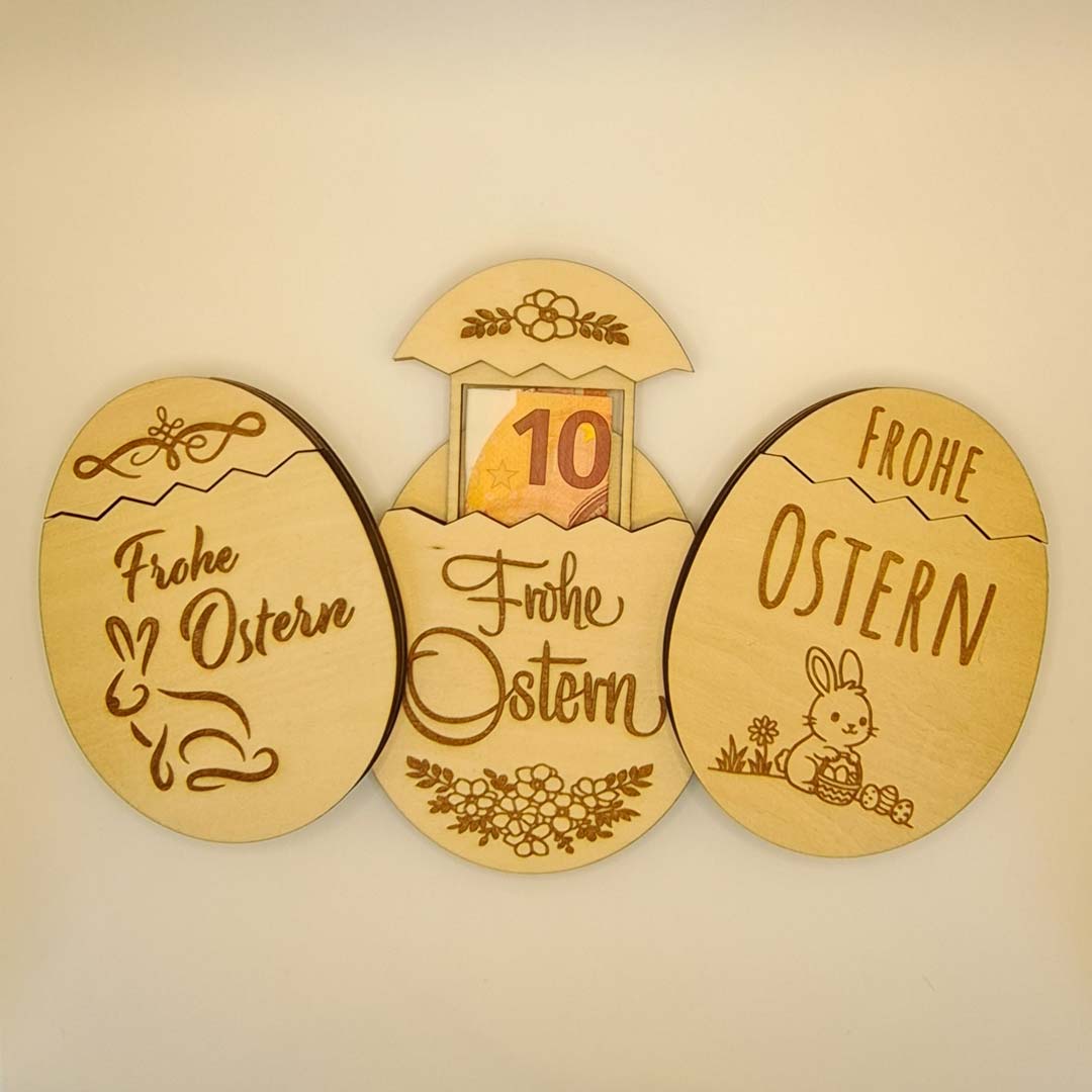 Lasergeschnittenes und graviertes Osterei mit Einschubmöglichkeit für gefaltete Geldscheine (passend für € 10,-), kleine Briefchen, u.v.m.
